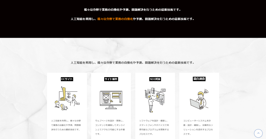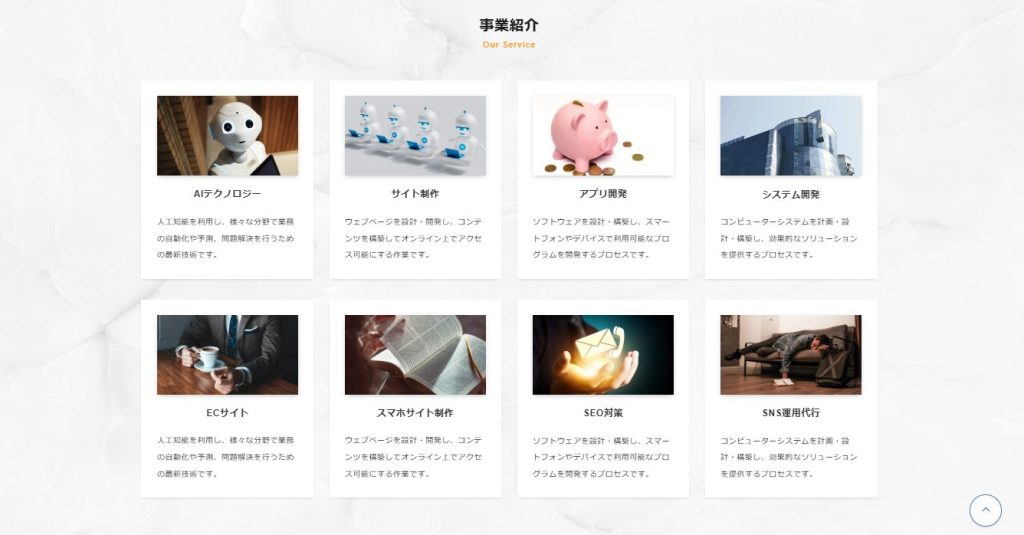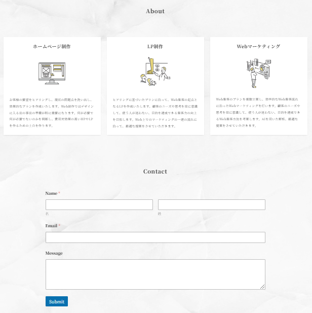 あとは、テキストや画像を自社のものに差し替えるだけで、プロがデザインしたような高品質なサイトの骨格が完成します。